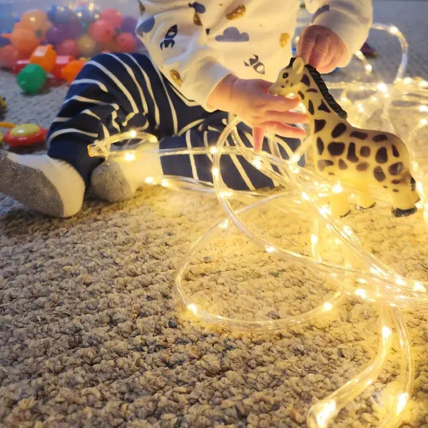 Tesoro has been playing around with a variety of lights. The children have been experimenting how different toys change color in the presence of the rope lights.